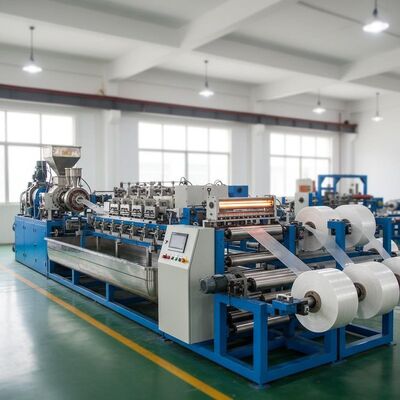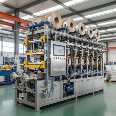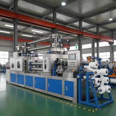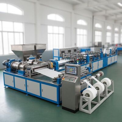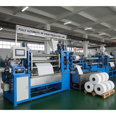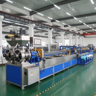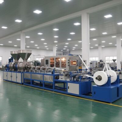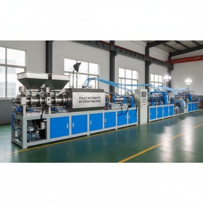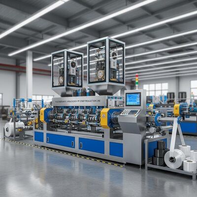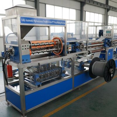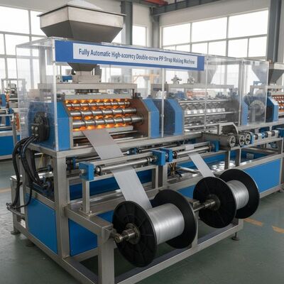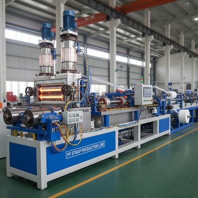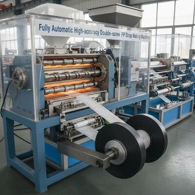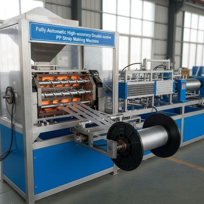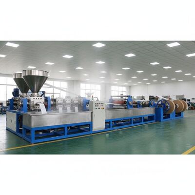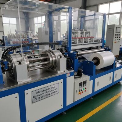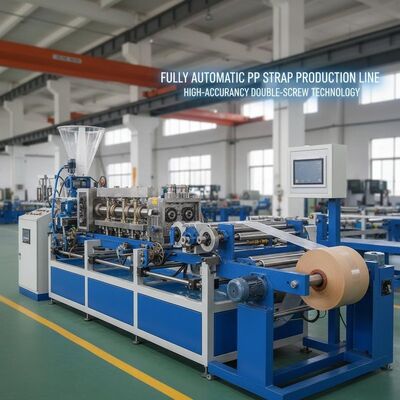 Γραμμή εξώθησης διπλού κοχλία υψηλής απόδοσης σχεδιασμένη για την κατασκευή 4 ταινιών ιμάντα PP με ακρίβεια και αποτελεσματικότητα. Αυτό το αυτοματοποιημένο σύστημα παραγωγής εξασφαλίζει σταθερή ποιότητα παραγωγής για εργοστάσια κατασκευής.